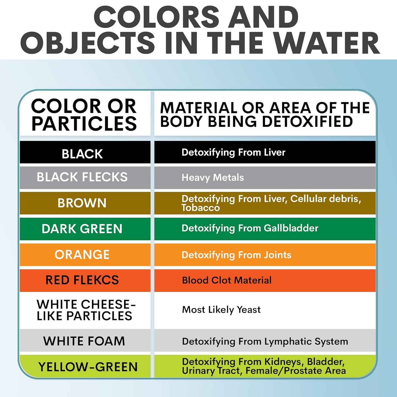 "Does exactly what it's supposed to so many toxins came out of my feet. The salt and Array have a chemical reaction that's the rust discolor but you can see all the scum that's the toxins. I had very good results! Everything as described, works as it should, my favorite part of doing these is the energy that comes along with the detox."